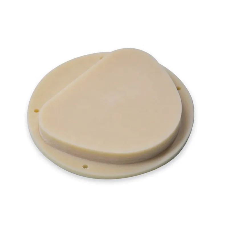 3. Thermoformen: Geben Sie die gemischten Rohstoffe in die Form und geben Sie die Form dann zum Erhitzen in den Extruder bei einer eingestellten Temperatur. Nach der angegebenen Zeit die Form herausnehmen und auf Raumtemperatur abkühlen lassen. Öffnen Sie die Form und nehmen Sie die geformte Form heraus. Dentalrohlinge aus PMMA.